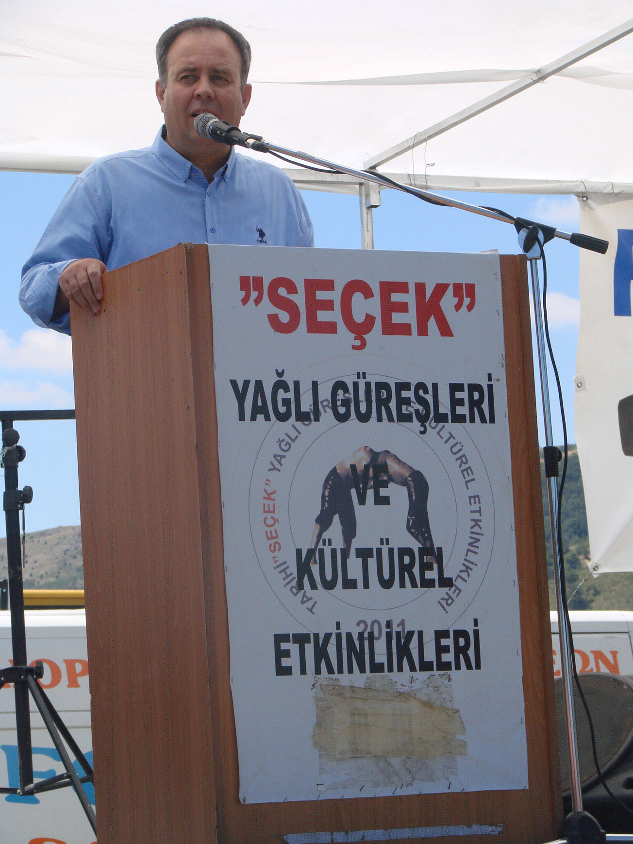 Sevgili konuklarımız, 700 yıldan beri kesintisiz bir şekilde icra edilen bu tarihi gelenek malumunuz olduğu üzere yakın tarihe kadar bu işe gönüllü, hevesli, maddi durumu müsait kişiler tarafından tek başına sürdürülerek geldi. Ancak katılımda artış görülmesi ve değişen hayat koşulları nedeniyle bir kişi tarafından yapılamaz hale geldi. Bu yüzden 1997 yılında kurulmuş derneğimiz bu işe el koydu. Üzerine aldı organizasyonu sponsorluğunu üstlendi. Masrafları karşılamak amacıyla istemeye istemeye giriş ücreti almak zorunda kaldı. Böyle sıcak bir yaz gününde bu tarihi mekanda toplanmamıza vesile olan bu yükü, bugünkü etkinliğin ve diğer benzeri sosyal faaliyetlerin birlik ve beraberliğimizi sağladığı sevgi ve saygıyı yarattığı, kardeşlik ruhunu güçlendirdiği, dayanışma ve kaynaşmamızı pekiştirdiği için çok büyük önem arz ettiği şüphe götürmez bir gerçektir. Yeri gelmişken bildiğim kadarıyla bu panayırın tarihçesine değinmek istiyorum. Tarih kitaplarında bunun hakkında doyurucu kesin bilgiye bugüne kadar ulaşılamamış sadece atalarımızdan gelen bilgiler bize ışık tuta gelmiştir ki bu bilgiler deyim yerindeyse efsaneleşmiştir. Bunları şöyle özetleyebilirim: Bulunduğumuz Seçek bölgesi uzak çevresi ile birlikte etrafımız Osmanlıların fetih orduları akıncı birlikleri tarafından fethedilince bu seferin şerefine bir kutlama şenliği düzenlenmesi uygun görülür. Nerede? Şu karşımızda gördüğünüz rüzgar türbinlerin bulunduğu yerin zirvesi olan ve adı Koca Yayla ya da Gaziler Yaylası diye bilinen yerde. Bir rivayete göre ise biraz beride bu şenliklerin 1920’ye kadar yapıldığı ve bulunduğumuz şu yerin 34 kilometre kuzeyindeki Haraç Yaylası’nda yapılmıştır. Yeri hala besbellidir, merak edenler varsa gidip görebilirler. Buradan oraya vasıta ile gitmeye yol vardır.