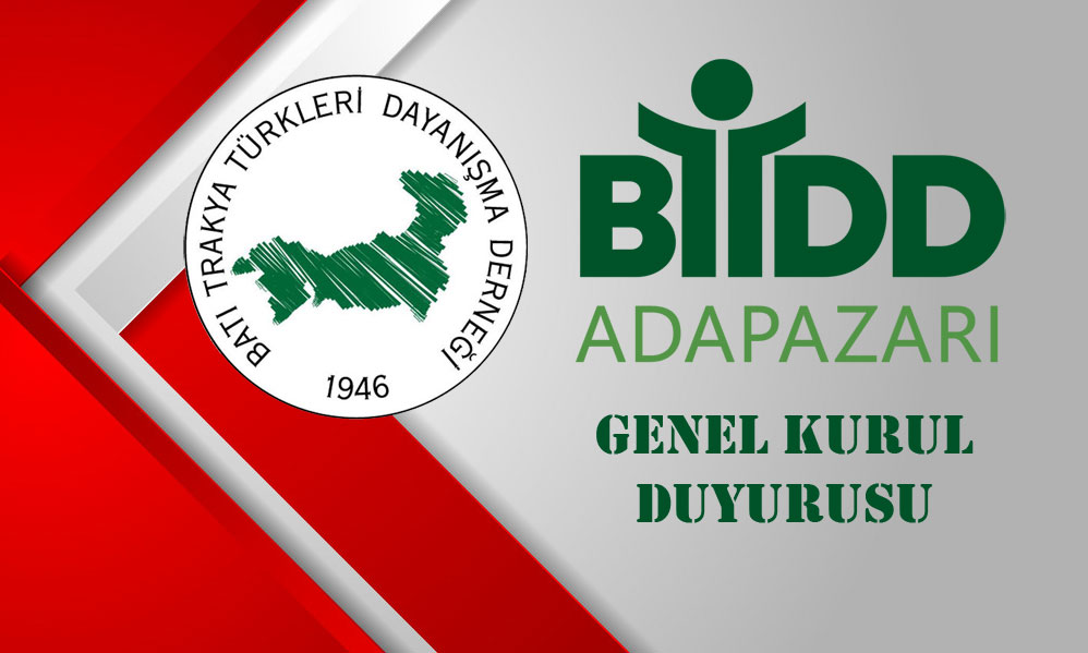 BATI TRAKYA TÜRKLERİ DAYANIŞMA DERNEĞİ ADAPAZARI ŞUBESİ OLAĞAN GENEL KURUL DUYURUSU