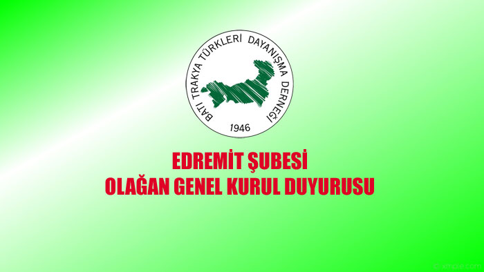 Batı Trakya Türkleri Dayanışma Derneği Edremit Şubesinin Olağan Genel Kurul ilanı.