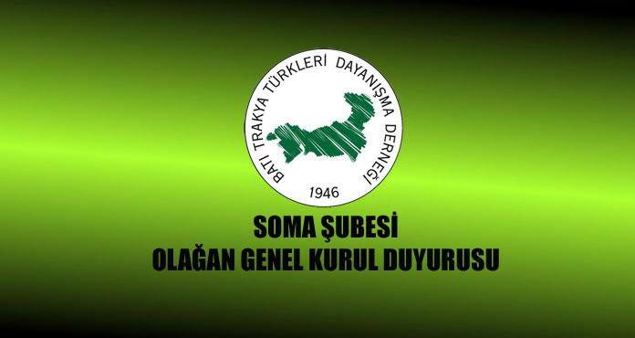 Batı Trakya Türkleri Dayanışma Derneği Soma Şubesinin Olağan Genel Kurul ilanı.
