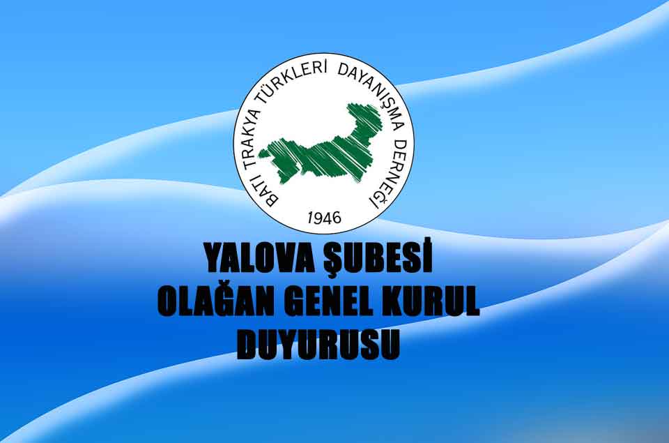 Batı Trakya Türkleri Dayanışma Derneği Yalova Şubesinin Olağan Genel Kurul ilanı.