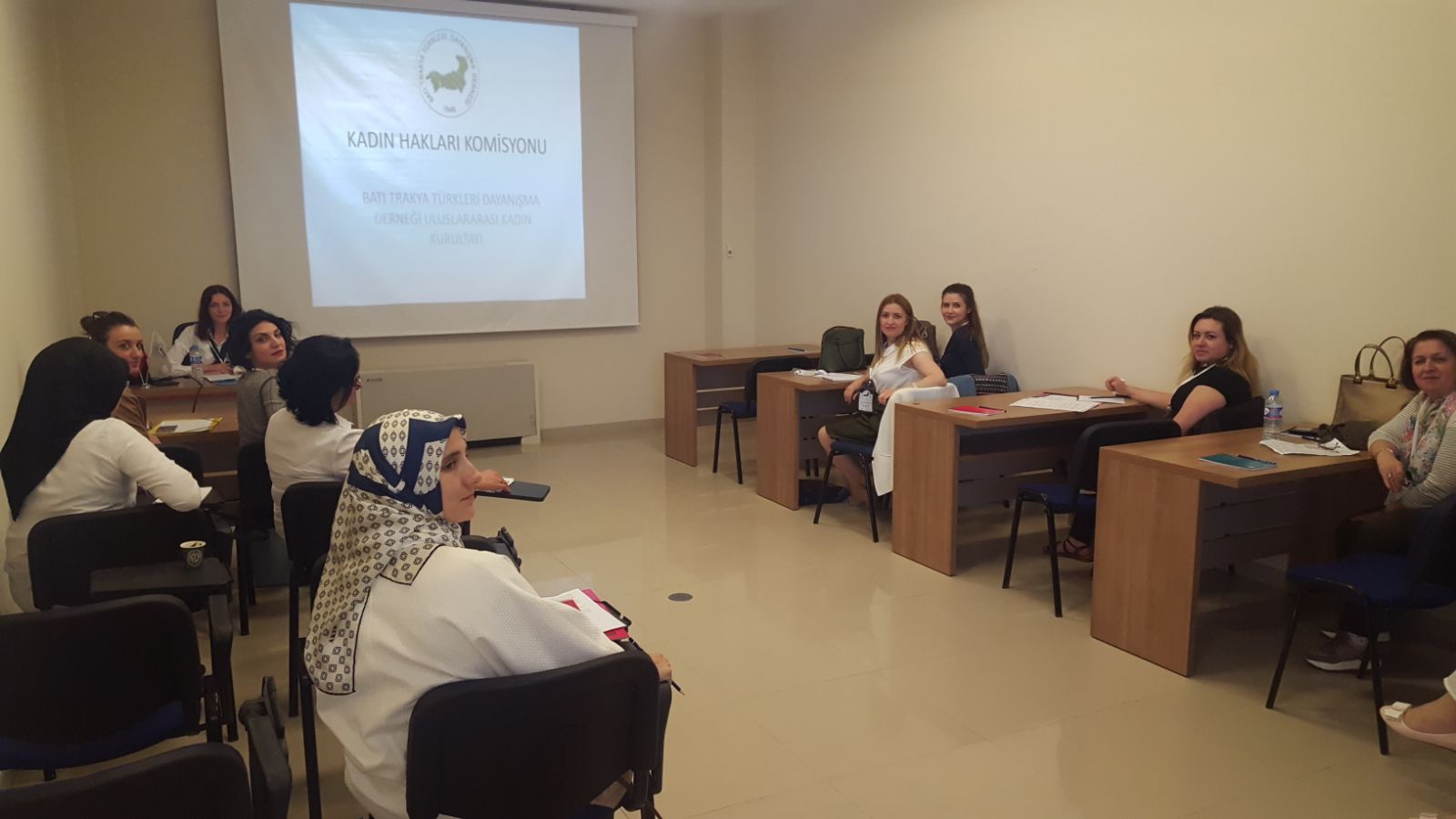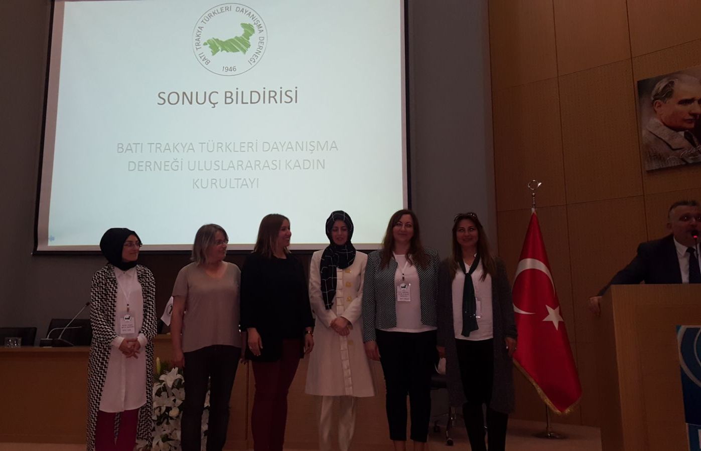 28 – 29 Nisan 2018 tarihlerinde Kocaeli’de toplanan Batı Trakya Türkleri Uluslararası Kadın Kurultayı’nda, Eğitim Komisyonu, Kadın Hakları Komisyonu, Aile ve Çocuk Komisyonu, Siyaset ve Ekonomi Komisyonu, Kültür ve Sanat Komisyonu’ndan oluşan beş ayrı çalışma grubunda Batı Trakya Türk kadınlarını ilgilendiren konular ve Batı Trakya kadınlarının mevcut durumunu değerlendirilmiştir. Yapılan çalışmalar sonucu aşağıdaki hususlar tespit edilmiş ve başta Yunanistan ve Türkiye Cumhuriyeti olmak üzere dünya kamuoyuna duyurulması kararlaştırılmıştır.